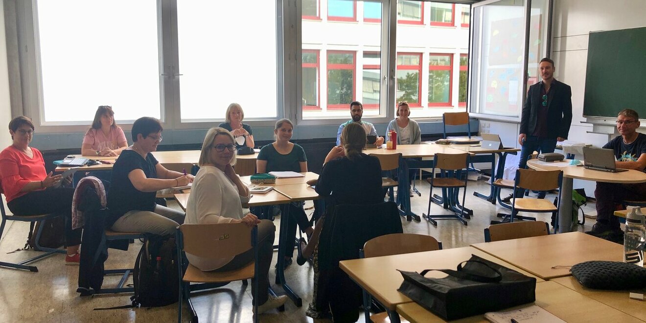 Die Austauschrunde soll zu einem regen Austausch aller Schulen dienen, die diese Fachrichtung anbieten. Da die Fachrichtung Gesundheit und Soziales seit einem Jahr auch am GWG belegt werden kann, waren wir besonders froh Veranstaltungsort dieses ersten Treffens zu sein. Besonderer Gast war der Leiter für Querschnittsaufgaben der Beruflichen Bildung am Landesamt für Pädagogik und Medien, der an den Günter-Wöhe-Schulen kein Unbekannter ist. Daniel Saar absolvierte hier im Jahre 2006 zuerst sein Fachabitur und zwei Jahre später 2008 sein allgemeinbildendes Abitur, bevor er sein Psychologiestudium in Angriff nahm. Am LPM ist er seit einigen Jahren zuerst als Mitarbeiter und jetzt in leitender Position tätig, weshalb er seine Lehrtätigkeit am BBZ Lebach im vergangenen Jahr beendete. Wir freuen uns sehr einen ehemaligen Schüler in solcher Funktion wiederzutreffen, vor allem da solche Arbeitsgemeinschaften eine starke Vernetzung und einen gewinnbringenden Austausch für alle Beteiligten bedeuten.